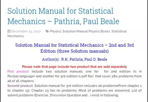 Read Online PATHRIA STATISTICAL MECHANICS SOLUTIONS MANUAL Doc Gutenberg